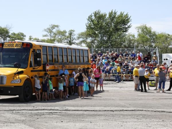 The bus comes to rest at the end of the demonstration. Photo courtesy Iowa Department of Education