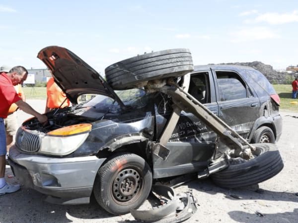 Pictured here is damage done to a car during a live demonstration of a T-bone crash with a school bus. Photo courtesy April Darling