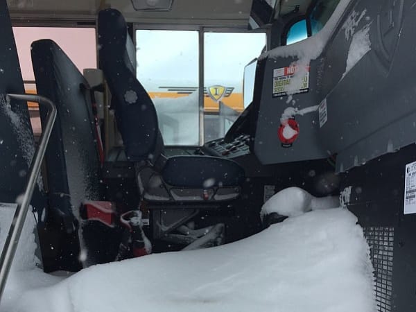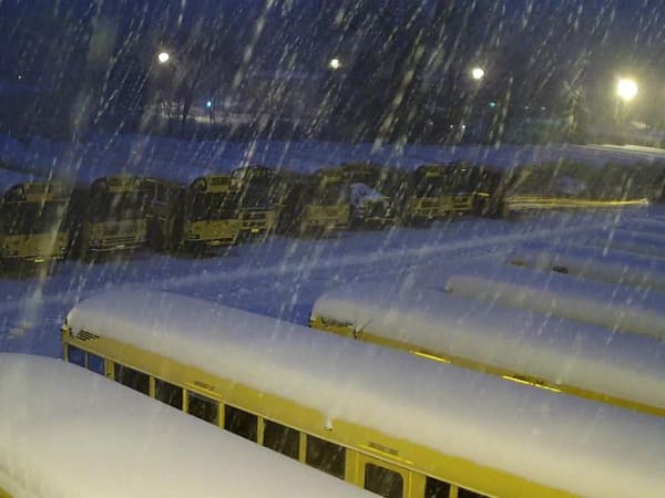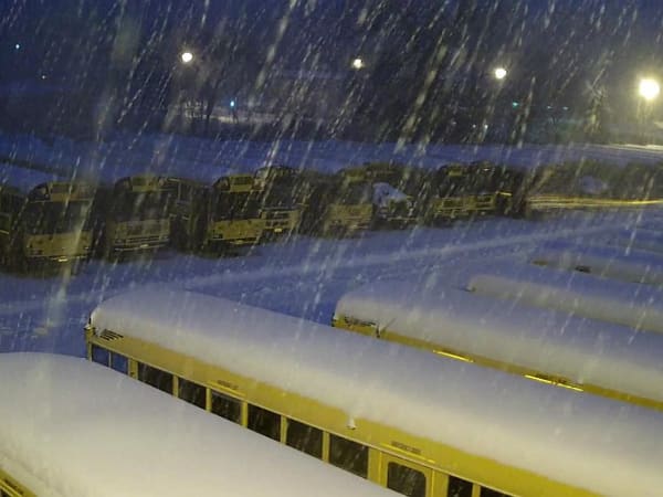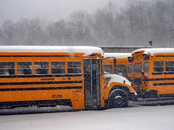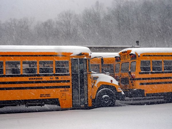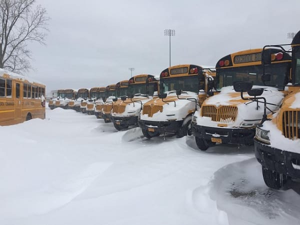 PHOTOS: Late Winter Blizzard Piles Snow on School Buses