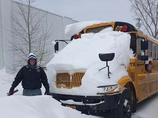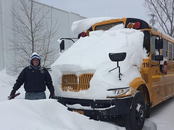 Kodie Shamrock, acting supervisor of transportation at North Tonawanda (N.Y.) City School District, needed to dig out buses after a storm dropped 19 inches of snow.