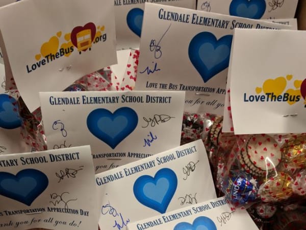 Glendale (Ariz.) Elementary School District #40 kicked off its Love the Bus festivities on Feb. 13 with something sweet: chocolates from the superintendent and assistant superintendent to all transportation department employees.