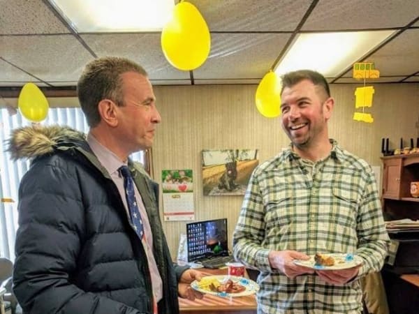 In Wisconsin, Berlin Area Schools Superintendent Dr. Carl Cartwright (left) joined the district’s bus drivers for breakfast on Feb. 12. Photo courtesy Berlin Area Schools