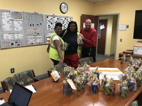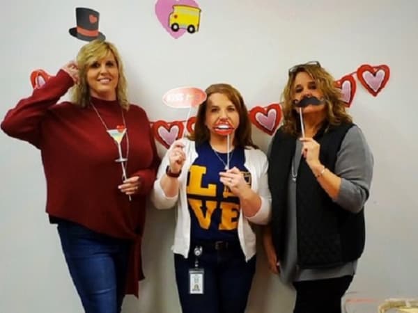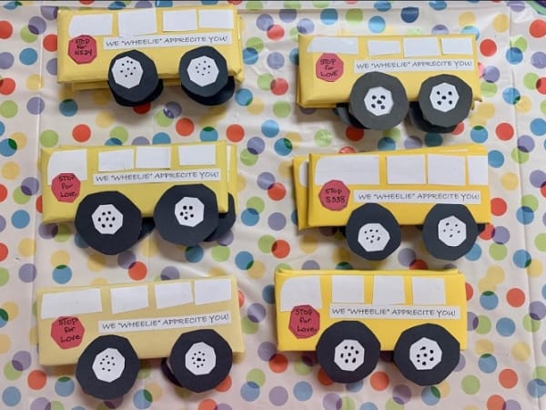 In Virginia, the transportation team at Gloucester County Public Schools were treated to school bus valentines, goodie bags, and a hot cocoa and cookie bar. Photo courtesy Tanya Deckard