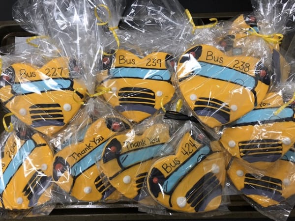 Staff and students at Lemira Elementary School in Sumter, S.C., showed their love for their bus drivers with personalized cookies that were homemade by one of the school’s teachers. Photo courtesy Leslie Dowling