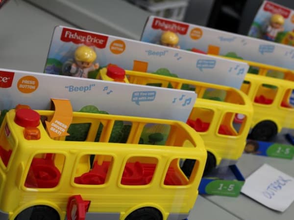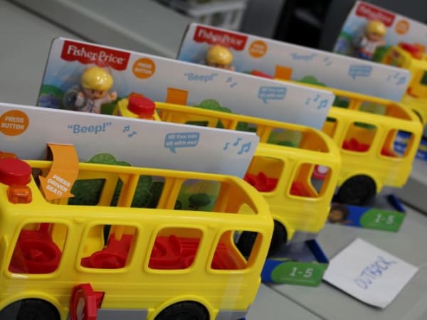 Four Fisher-Price school buses were given out as door prizes at the North Carolina celebration. HSM also gave away a gift card to Outback Steakhouse. Photo courtesy Daniel Seamans