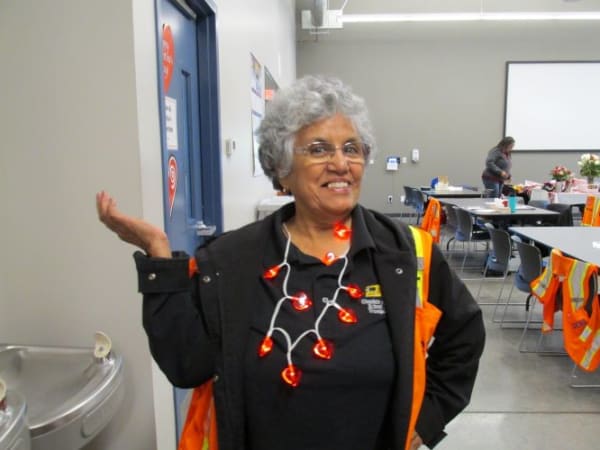 Cecilla Bidwell, a bus monitor for Glendale Elementary, shows off a necklace of heart-shaped lights that a parent gave her. Photo courtesy Doris Bean