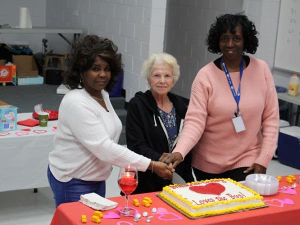 The celebration included a beautifully decorated cake. Pictured here are the district's three longest-tenured bus drivers (from left to right: Willa Vernon, Rosemary Long, and Mae Simmons) in attendance at the event. Photo courtesy Daniel Seamans