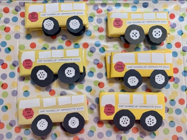 Students at Royal Palm School in Lantana, Fla., “wheelie” showed their appreciation for their bus drivers with treats decorated like mini school buses. Photo courtesy The School District of Palm Beach County