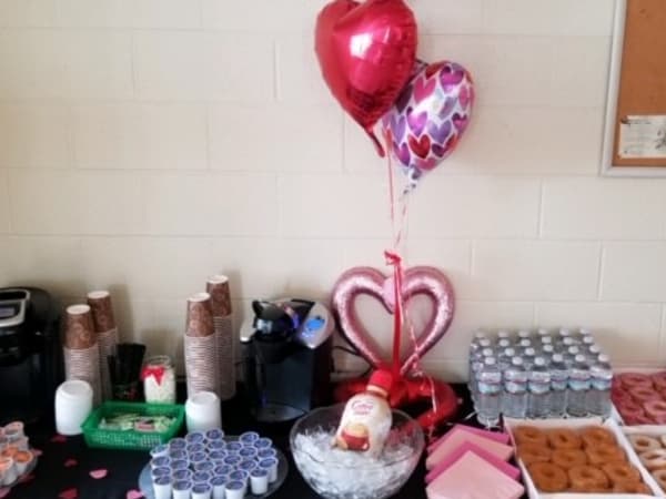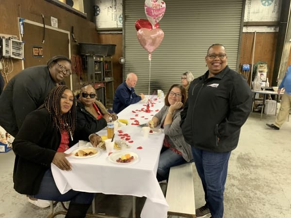 More than 50 transportation staff at Brazosport Independent School District in Clute, Texas, enjoyed a catered breakfast before their morning routes on Valentine's Day. Photo courtesy Brazosport ISD