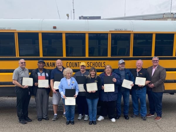 Kanawha County (W.Va.) Schools recognized all of its transportation staff members who have more than 20 years of service. Together, the staff pictured above have over 580 years of service. Photo courtesy Peggy Stone