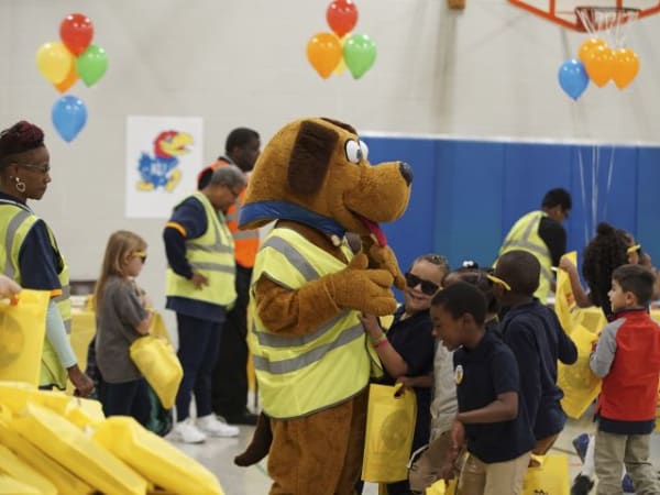 First Student's Safety Dog toured school districts in the U.S. and Canada to share school bus safety tips with students, as well as goodie bags and supplies for a coloring contest.