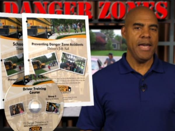 School Bus Safety Co. revamped its training program on danger zones, and started providing free copies to any North American pupil transporter during National School Bus Safety Week. Shown here is a screen shot from the video.