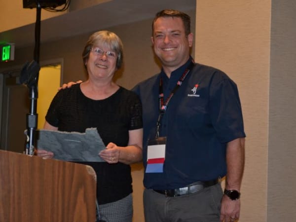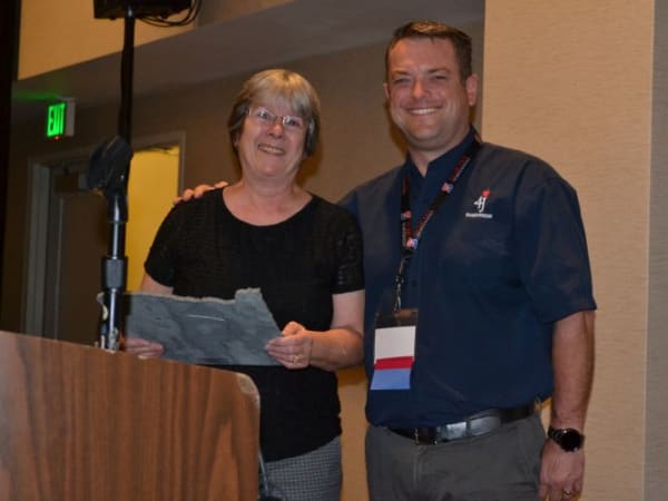 David Jorgenson of Salem-Keizer Public Schools was named OPTA’s Supervisor of the Year. He is seen here with Kim Hevia of Schetky Northwest Sales.