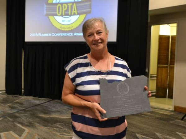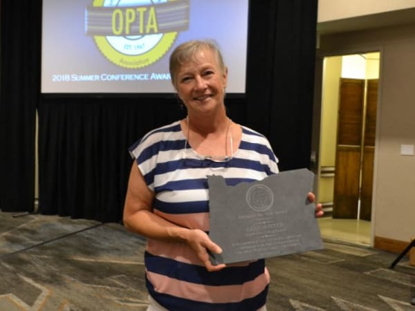 Kathy Houck, who recently retired from her longtime role as transportation coordinator for Reynolds School District, won OPTA’s Ron Bryan Award for leadership, and she earned a special recognition for 25 years of service to the association.