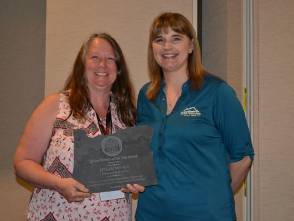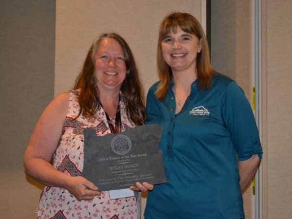 Hylah Moncy (left) of Lebanon School District earned the Driver/Trainer of the Year honor. She is seen here with Mollie Blagg of Western Bus Sales.