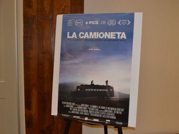 A movie poster for La Camioneta is seen here. Kendall conducted a Q&A session after the screening.