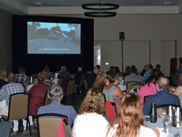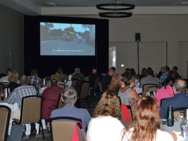 OPTA attendees watch La Camioneta on the big screen.