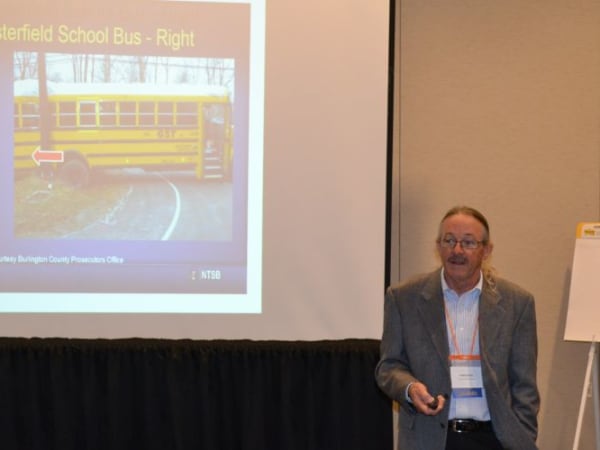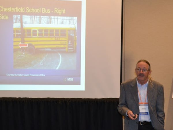 Charlie Hood, executive director of the National Association of State Directors of Pupil Transportation Services, discusses school bus crash investigation findings from the National Transportation Safety Board. Hood and Graham also led a session on stop-arm violations.