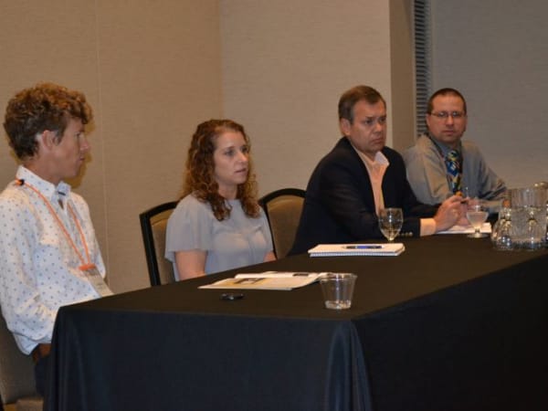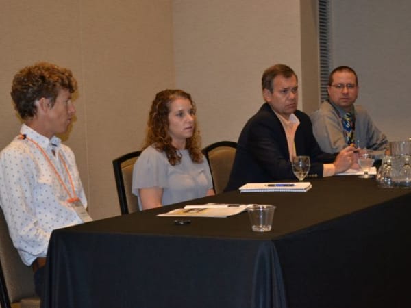 Ridesharing services for students was the subject of this OPTA panel discussion, which included (from left) SBF Editor Thomas McMahon, HopSkipDrive CEO Joanna McFarland, Graham, and T.J. Crockett, former policy analyst for the Oregon Department of Education (DOE).