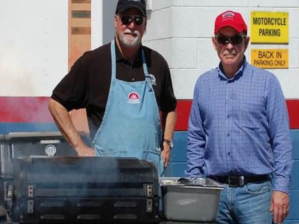 At the grill during the annual appreciation barbecue were Michael Shields (left), director of transportation and auxiliary services, and Michael Burton, fleet manager.