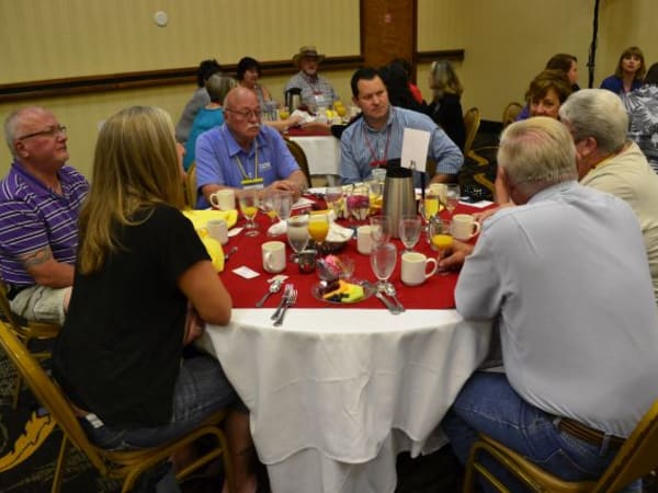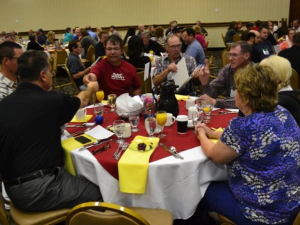 A new component of the OPTA conference this year was a networking session for attendees and vendors. Representatives of school bus supplier companies sat at a table with several attendees to have a discussion before moving on to the next table.