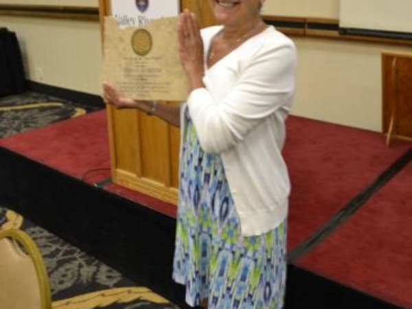 Jane Langlois of Beaverton School District won the Dennis Essary Leadership Award. After accepting the award, Langlois talked about her experience working with Essary, the late pupil transportation industry leader.