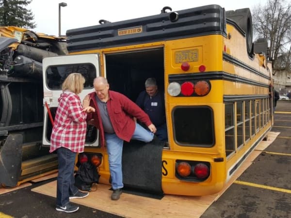 An overturned school bus, goggles that simulate being under the influence, and a smoke-filled bus were among the hands-on exercises at the OPTA South Willamette chapter's training event.