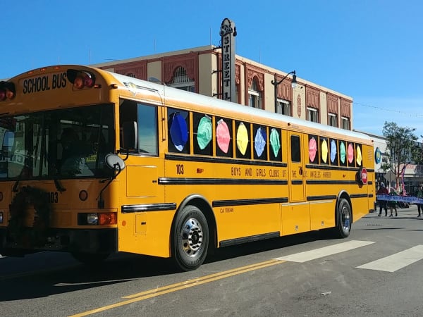 A festive school bus from the Boys and Girls Club of Los Angeles Harbor was on display at the San Pedro, California Holiday Parade in December.