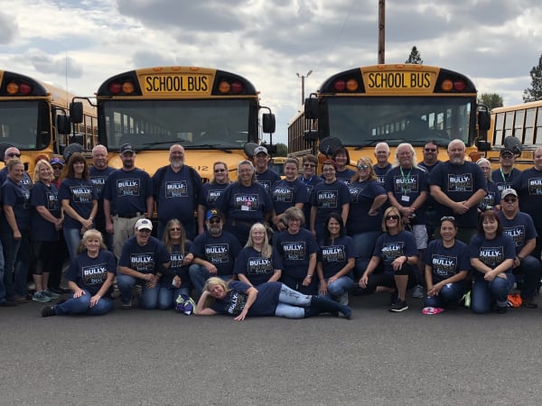Members of the Student Transportation of America team in Battle Ground, Washington, donned blue shirts on Oct. 1 as a symbol of unity against student bullying for Student Transportation Inc.’s “Bully-Free Buses” campaign.