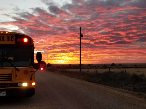 Tina Pearson, Swink (Co.) School District’s transportation director, captured the pink and orange hues of the sky as one of the district’s school buses completed its morning route.