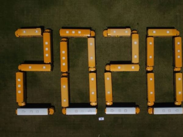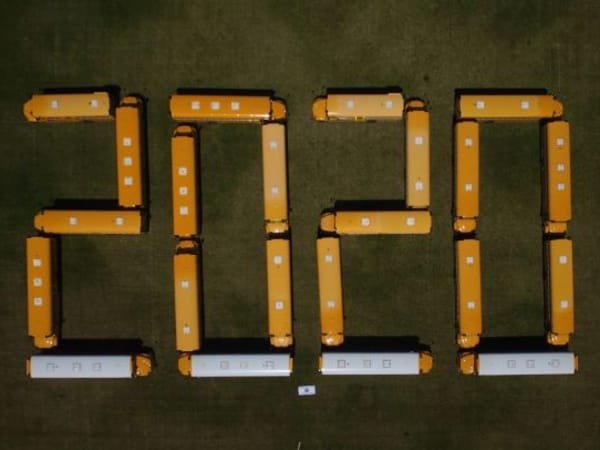 Lorri Smith, the transportation director of East Valley School District Transportation in Spokane Valley, Wash., sent this photo of some of her district’s school buses, which drivers moved to form “2020” to commemorate the high school’s graduating seniors.