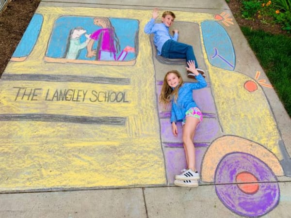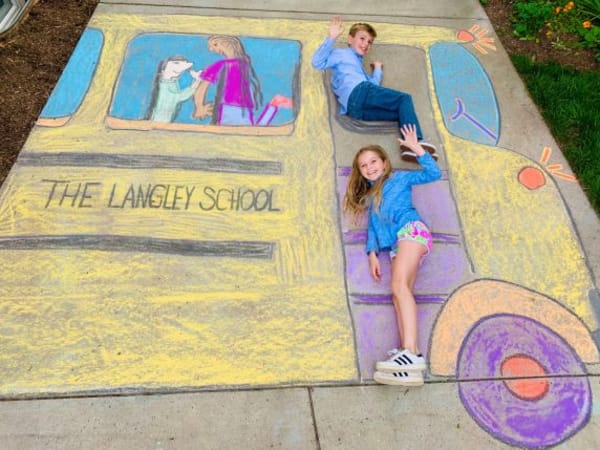 Courtney Portner and her 10-year-old twins Audrey and Sully (shown here) started creating chalk drawings in April of things that they miss while being in quarantine, such as “school field trips with classmates,” as Portner says in an Instagram post that included this photo she took of the drawing. (You can find the whole series of drawings on DailyDoseofChalk on Instagram.)