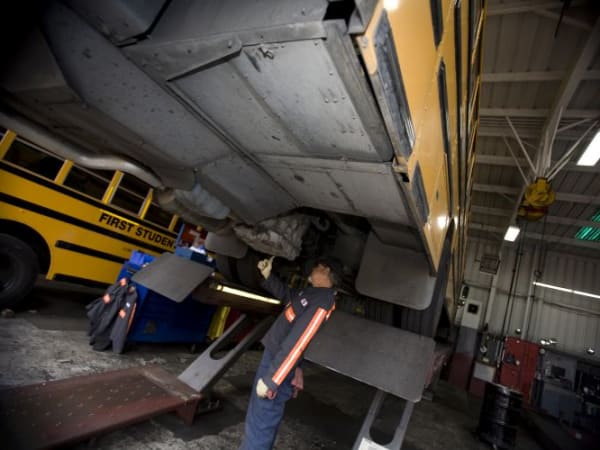 This striking shot comes from First Student, which recently had 10 locations earn the ASE Blue Seal of Excellence. To achieve that designation, at least 75% of technicians at the location must be certified by ASE. Also, each area of service offered in the shop must be covered by at least one ASE-certified tech.