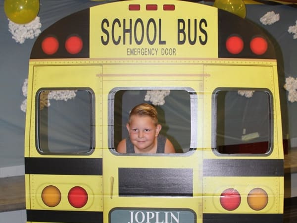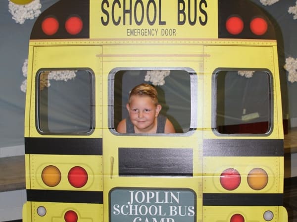 Joplin (Mo.) Schools held its inaugural School Bus Camp on June 22 to highlight the importance of school bus safety for students and parents. More than 190 kindergartners and parents attended the single-day event, which included games, a presentation about railroad safety, and an emergency bus evacuation training. Photo courtesy Justin Crawford