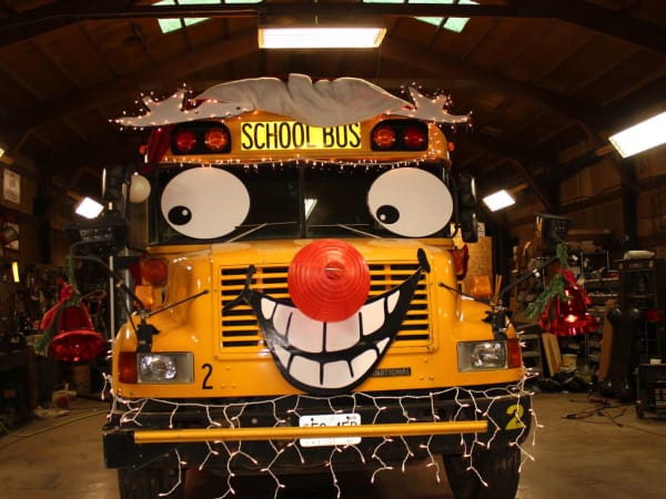 Here’s another Yuletide yellow bus. Southern Reynolds County R-II Schools in Ellington, Missouri, decked out this smiling school bus for the town’s annual Christmas parade. The team won first place, and Transportation Director Eddie Rains is reportedly already making plans for the next parade.