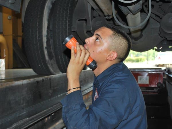 Maintenance professionals from across Texas gathered in San Marcos last summer for the Texas Association of School Bus Technicians’ annual competition. The event includes mechanical troubleshooting and school bus inspections. Pictured here is Ramiro Garcia of Houston Independent School District.
