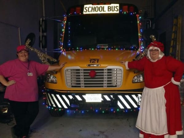 Humble (Texas) Independent School District’s festive “float” took home a top honor in a local Christmas parade in December. Bus driver Nicole Pennetta (left) came up with the idea to enter the parade, and she organized efforts to adorn the bus with Christmas lights, reindeer antlers and other decorations. Another driver for the district, Karen Ferris, dressed as Mrs. Claus and drove the bus in the parade. The bus won the motor vehicle float category.