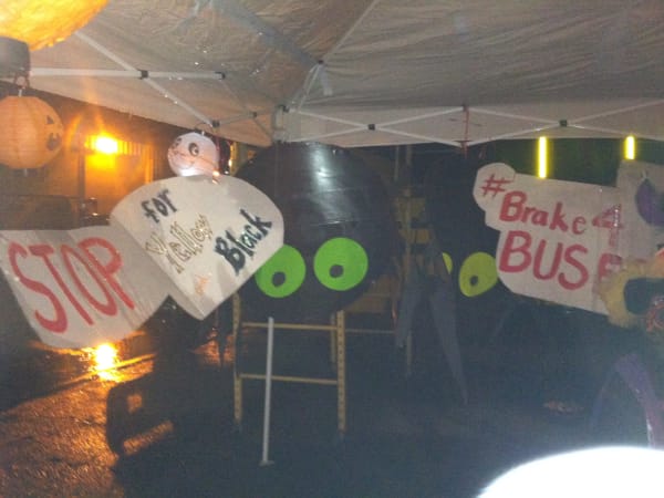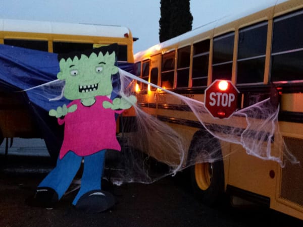 Spooky decorations as well as stop-arm safety messages were on display at Waterford USD’s “Trunk or Treat” exhibit. “Big spider eyes let people know we would be watching them!” says Suzanne Bauer, the district’s director of transportation.