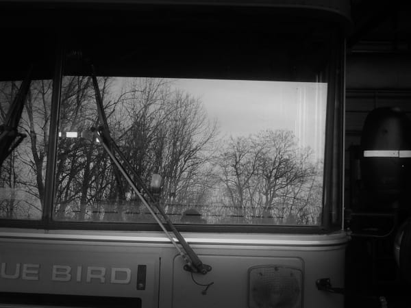 Stark trees and sky are reflected in the windshield of a school bus in this striking photo, shot by Wes Ramirez, lead technician at Mid-Columbia Bus Co.’s Forest Grove, Oregon, location.