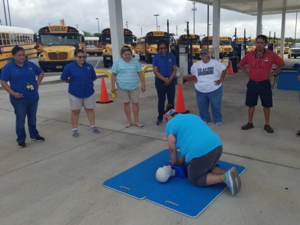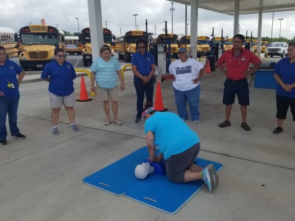 San Antonio Independent School District (ISD) held an engaging training event for its school bus drivers and other staff on June 5. More than 300 employees rotated through 10 stations, including CPR and first aid training.