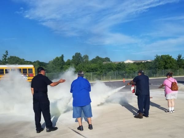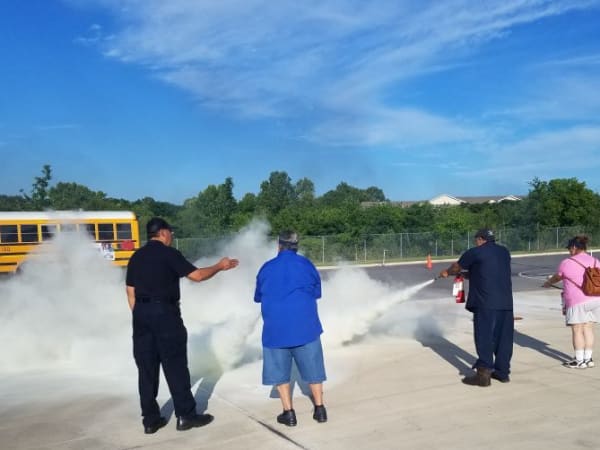 The San Antonio ISD training event also included live fires for fire extinguisher training.