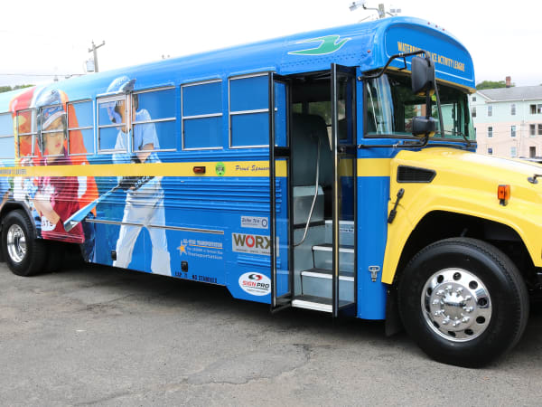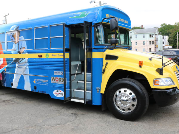 All-Star Transportation recently donated this new propane-powered school bus to the Waterbury (Conn.) Police Athletic League. The nonprofit will use the bus to shuttle kids to educational, athletic, and recreational programs.