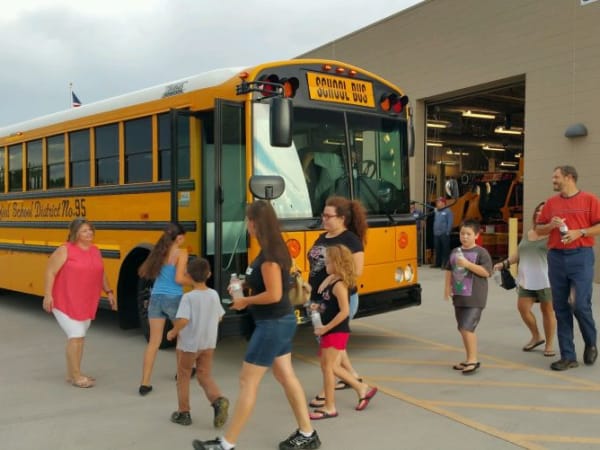 An open house brought more than 100 people to the transportation department at Queen Creek (Ariz.) Unified School District on July 18. Attendees toured the facility, checked out new buses, and learned about safety.