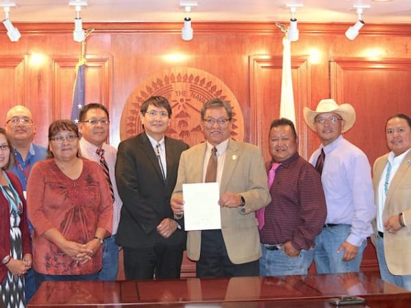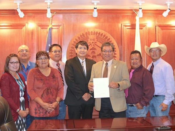 Navajo Nation President Russell Begaye (middle right) and Vice President Jonathan Nez (middle left) proclaimed October as "National School Bus Safety Month," which was advocated by Ganado (Ariz.) Unified School District drivers and staff.