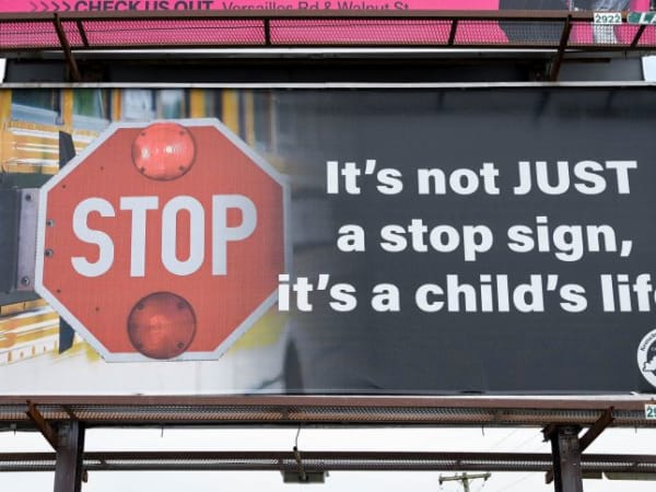 As the new school year approached, Kentucky drivers began seeing roadside reminders to stop for school buses. The Kentucky Department of Education’s safety message appeared on 51 billboards across the state.