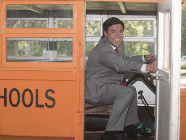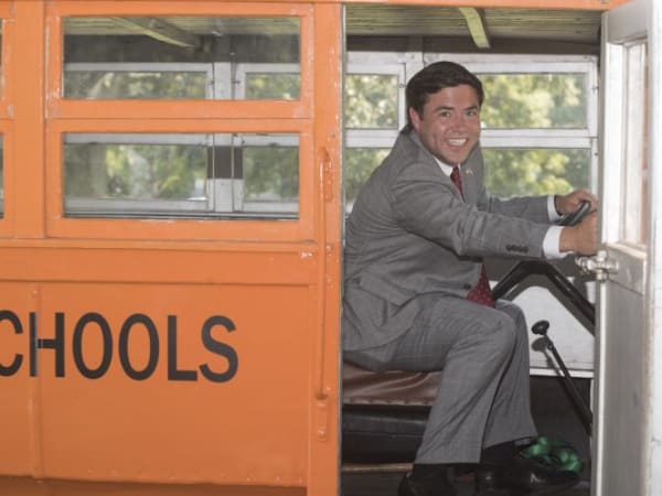 Mark Johnson, North Carolina’s state superintendent of public instruction, took the wheel of a vintage 1930s school bus at a Sept. 5 event recognizing the 100th anniversary of motorized school transportation in the state. Photo courtesy N.C. Dept. of Public Instruction