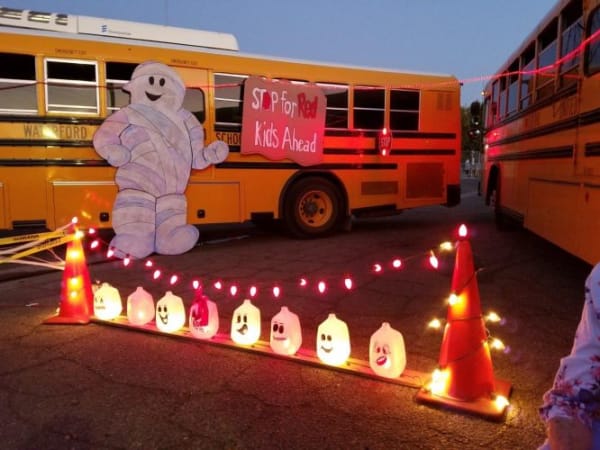 At a community “Trunk or Treat” event on Halloween, Waterford (Calif.) Unified School District shed light on safety with the theme “Stop for Red — Kids Ahead.” Transportation Director Suzanne Bauer said the annual event is “a terrific opportunity to share school bus safety with our community.”