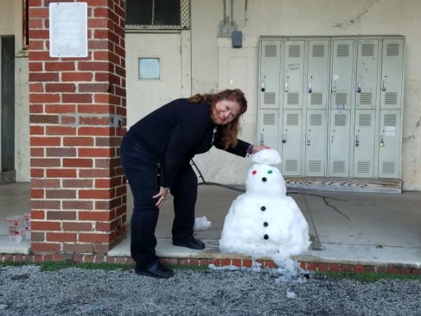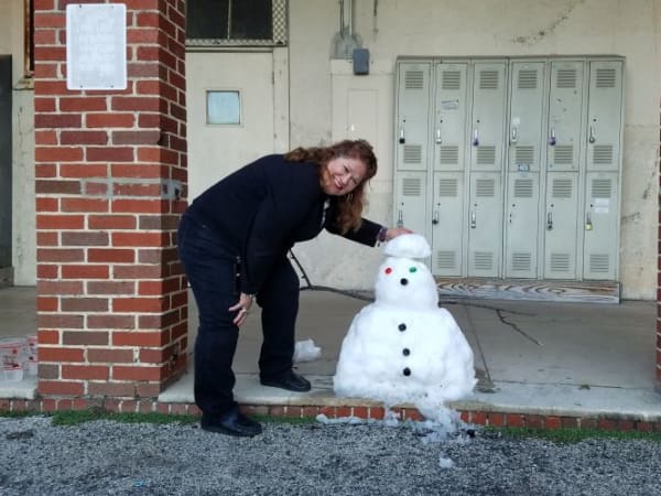 On Dec. 8, San Antonio, Texas, got about 2 inches of snow — the most in more than 30 years for the home of the Alamo. Here, Carmen Hughes, a transportation payroll manager for San Antonio ISD, shows off a rare (and probably short-lived) San Antonio snowman.