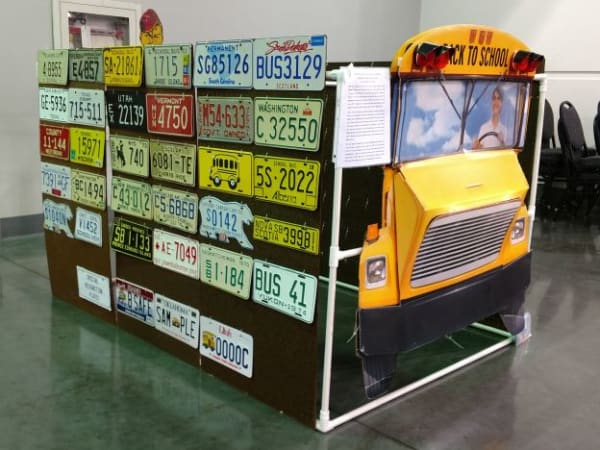 Louk Markham has retired from school transportation, but he still has a lot on his plates (pun intended). He put together this impressive display of school bus license plates collected from all 50 states, plus Washington, D.C., Puerto Rico, and all 13 Canadian provinces and territories.