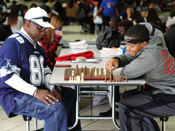 Donald Harris’ work with students isn’t limited to the school bus. The driver for Duncanville Independent School District (ISD) in Texas is sharing his newfound love of chess in the school cafeteria, teaching and playing with students during lunch break. Photo courtesy Duncanville ISD